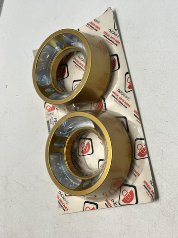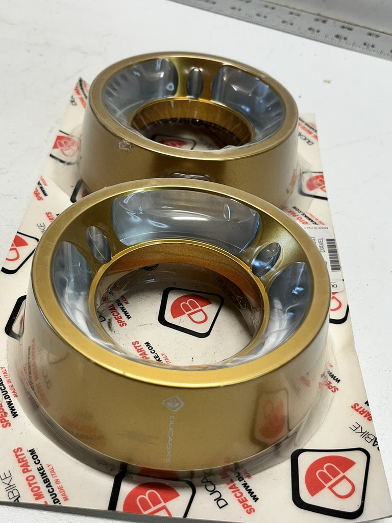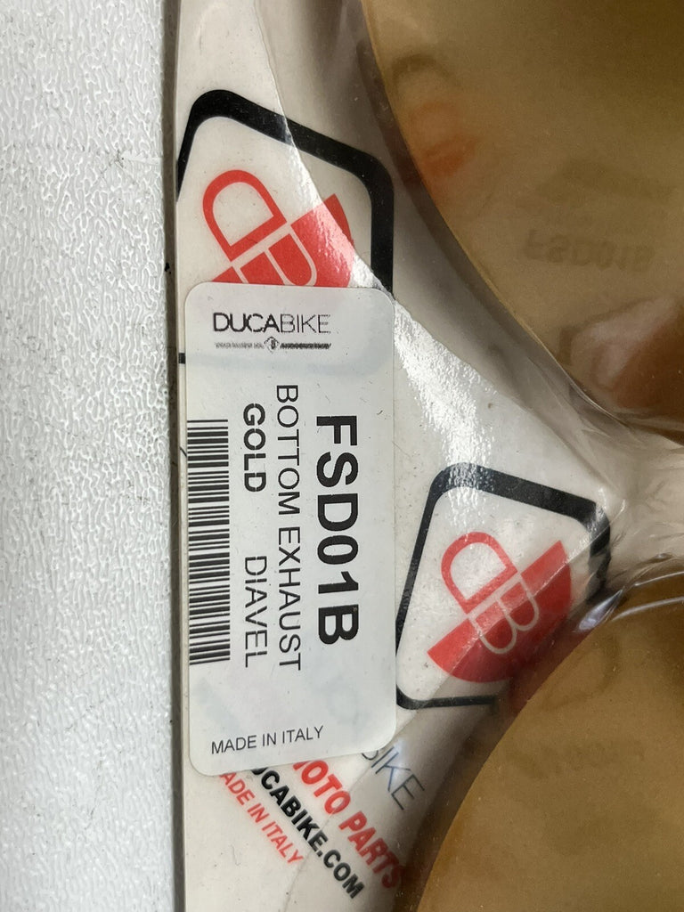 DUCABIKE FSD01B BOTTOM EXHAUST DIAVEL GOLD BILLET LIGHT ALLOY END CAPS ANODIZED.
