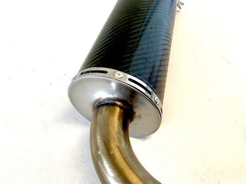 The Termignoni Carbon Fiber Right Exhaust Canister Refurbished 45mm is a high-quality silencer designed for Ducati 748 916 996 motorcycles. Made of stainless steel and carbon fiber, this slip-on silencer features a dual exit design and comes in a sleek black color. Manufactured in Italy, it is backed by a manufacturer warranty, ensuring durability and performance. Perfect for enhancing the exhaust system of your vehicle, this Termignoni product is a stylish and reliable choice for motorcycle enthusiasts looking to upgrade their ride.