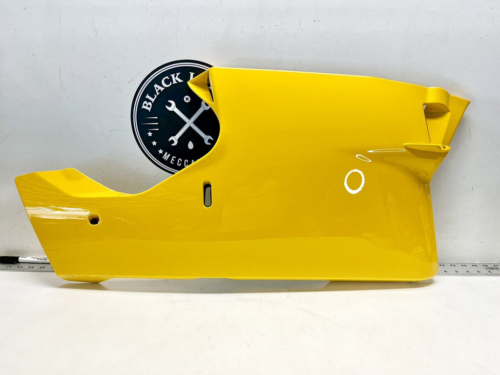 This is a genuine Ducati 999 749 right lower fairing cowling panel with the part number 48031521A. The fairing is made of ABS material and comes with a painted finish in a yellow color. It is an original OE/OEM spare part made in Italy, and it includes only the fairing without any additional items.